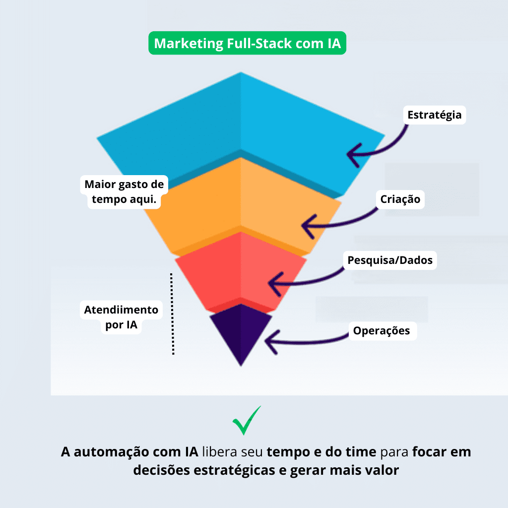 O conceito de Marketing Full-Stack com IA automatiza as camadas que antes consumiam todos os recursos.